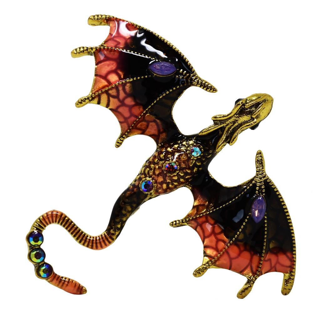 Wunderschöne und sehr detaillierte Drache Brosche mit Strasssteine.